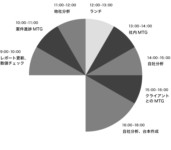 仕事は1分程度の動画広告をつくること。目的やテーマにあわせてシナリオを考えて、全体の流れを構成。必要な素材をまとめて外部のパートナーさんに編集を依頼します。広告配信後には効果測定を実施。振り返りを元に競合の作品の分析なども絡めてさらに成果が出せる広告をつくる、というPDCAを回しています。