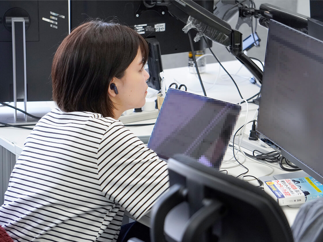 最近は実制作に加えて3人のメンバーに指示を出したり、方向性を伝える役割が増えてきました。ディレクション業務ですね。クリエイティブは正解のない仕事。それだけにデータを見ながらターゲットを意識しつつ、常にチューニングを施す必要があります。だからこそチーム内での効果や分析結果の共有を積極的に推進しているところです。